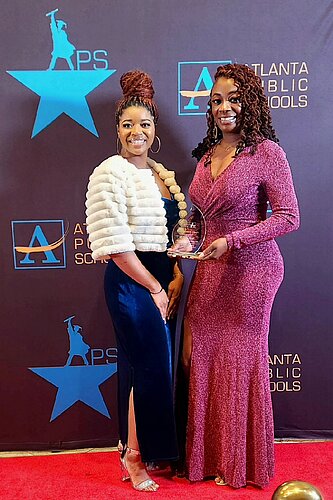 The Council on Alcohol and Drugs was selected as Atlanta Public Schools' South Atlanta Cluster Partner of the Year and was awarded at the 2023 APYes! Awards Gala. The award was given to The Council for its work on the Peer Assisted School Transition Project (PAST) and the Drug Free Community Support Program (DFC). Awardees were selected from a pool of nominees based on the following criteria: nature of support provided, the goals and outcomes of the partnership and how the partnership has contributed to student achievement. These projects are led by Afiya H. King, MPH, MCHES, ICPS, and her fantastic team: NaKia Cross, MPH, ICPS, Hillarie Wise, MPA, ICPS, and Dr. Karen Citizen-Wilcox. Pictured are NaKia Cross (left) and Afiya H. King (right).