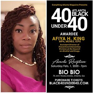 Congratulations to Afiya King on a tremendous achievement. She has been awarded the 2020 Atlanta Black 40 Under 40 Award presented by Everything Atlanta Magazine. The Black 40 Under 40 Awards is an annual event created to honor and highlight 40 of Atlanta's exceptional millennials for their accomplishments in their chosen field and for their significant contributions to the community in the Atlanta and Metro Atlanta areas
