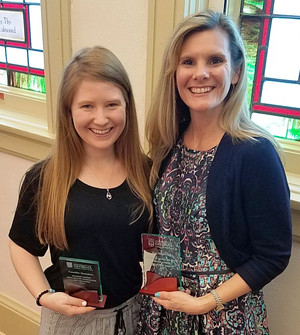 April 26, 2018 - Camilla Herndon (left) and Kay Manning were honored at the UGA College of Public Health Practice Advisory Group meeting at the University of Georgia! The Practice Advisory Group meeting is an awards luncheon that serves to honor exceptional field placement supervisors and UGA public health student interns. Kay was honored with the Preceptor of the Year award for her role as an internship site supervisor and Camilla was honored with the Student Intern of the Year award.