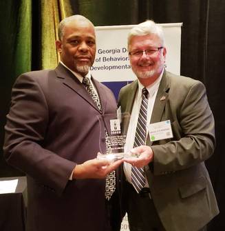 Kevin Daniels (left) and Harry Stevenson won the Regional Provider of the Year Award in Region 5 at the Oct 3, 2018 Awards Dinner at the DBHDD Symposium at Lake Lanier.